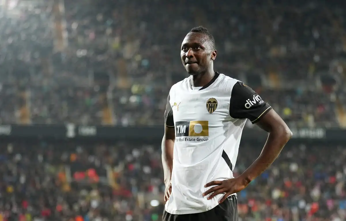 VALENCIA, SPAIN - MARCH 08: Umar Sadiq of Valencia CF celebrates scoring his team's second goal during the LaLiga match between Valencia CF and Real Valladolid CF at Estadio Mestalla on March 08, 2025 in Valencia, Spain. (Photo by Aitor Alcalde/Getty Images).